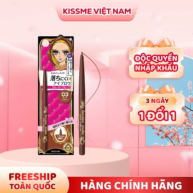 Bút Chì Sáp Kẻ Lông Mày Lõi Siêu Mịn Không Thấm Nước Kissme Heroine Make Quick Eyebrow (3 Màu)
