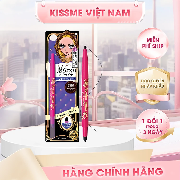 Bút Chì Sáp Kẻ Mí Mắt Không Trôi Kissme Heroine Make Quick Eyeliner (Nét Vẽ Tự Nhiên-Dạng Xoay)