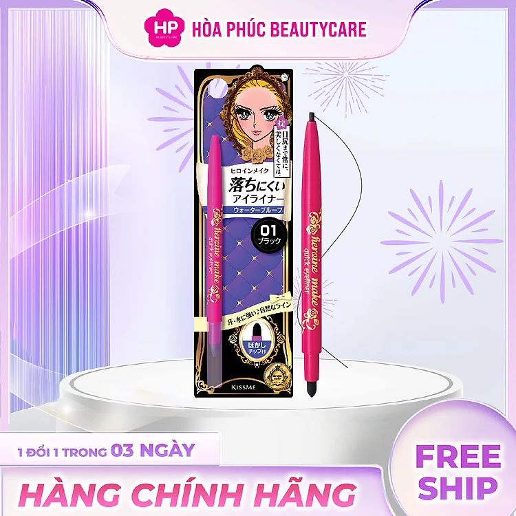Bút Chì Sáp Kẻ Mí Mắt Lâu Trôi Nét Vẽ Tự Nhiên Dạng Xoay Màu Đen Kissme Heroine Make Quick Eyeliner