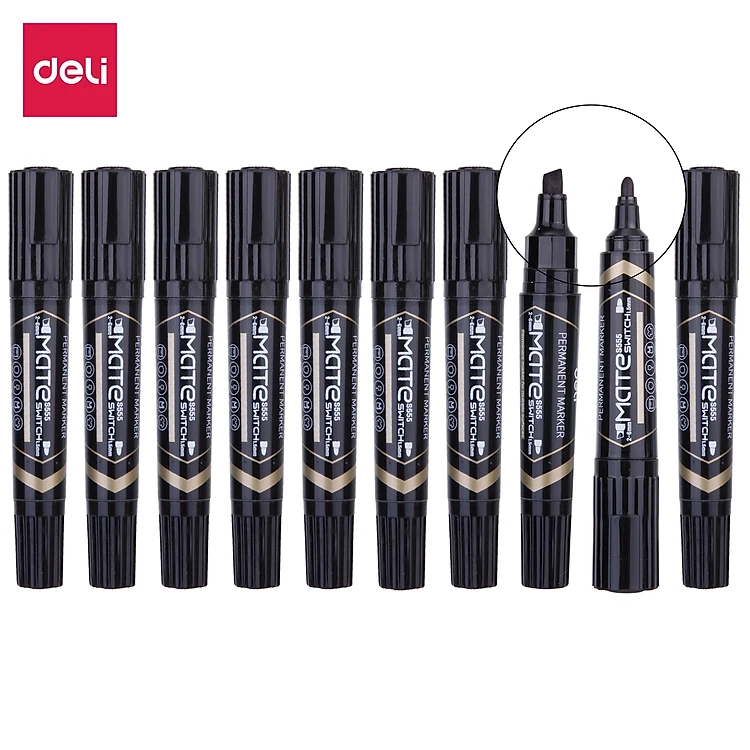 Bút dạ kính Deli - không xóa được - 2 đầu bút 2 kích cỡ ngòi - Mực Xanh/ Đen/ Đỏ - 10 cây/hộp - ES555