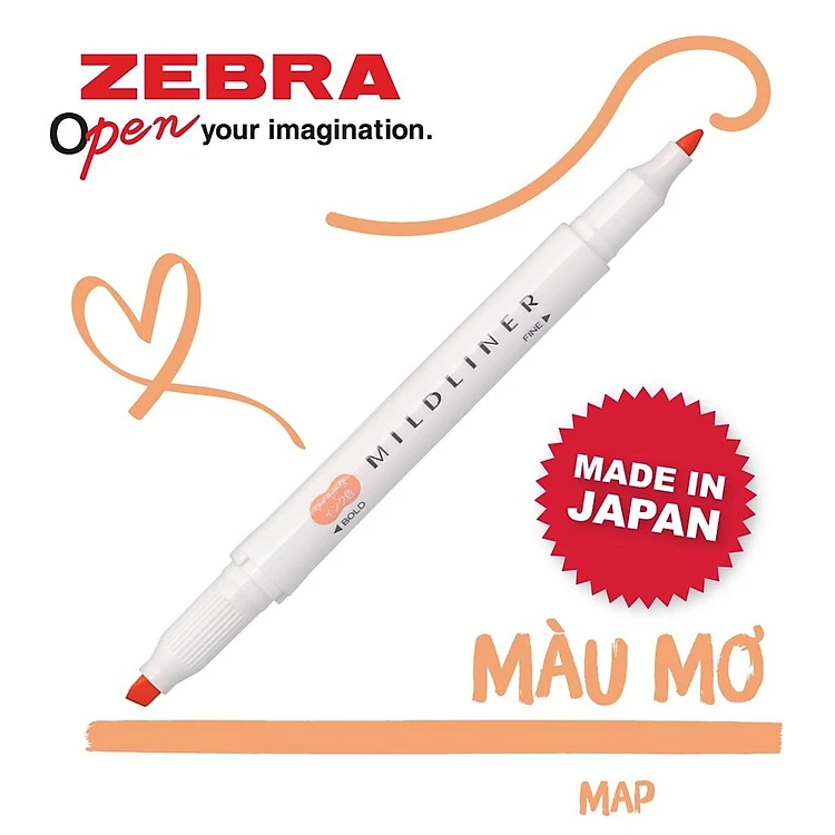 Bút đánh dấu 2 đầu Zebra Mildliner Nhật Bản 35 màu - 1 cây