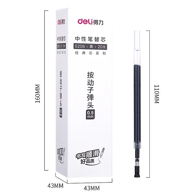 Bút gel bấm Bút bi nước mực Xanh/Đen/Đỏ Deli cho Văn phòng Học sinh ngòi 0.5mm - Mực đều chữ đẹp