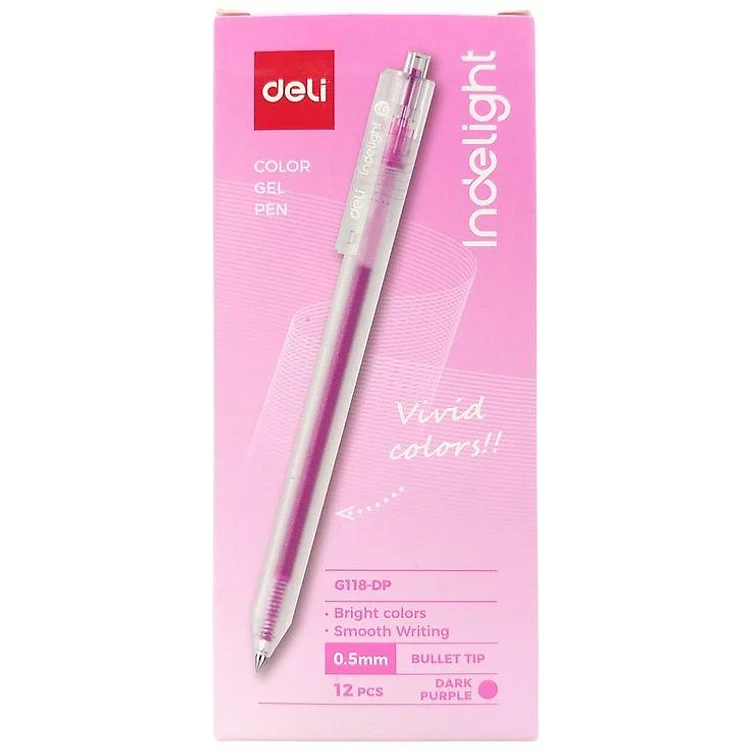 Bút Gel Bấm Deli 0.5mm EG118-DP Màu Tím Hồng