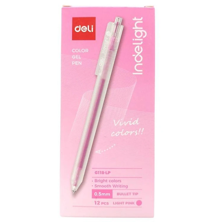 Bút Gel Bấm Deli 0.5mm EG118-LP Màu Hồng Sen