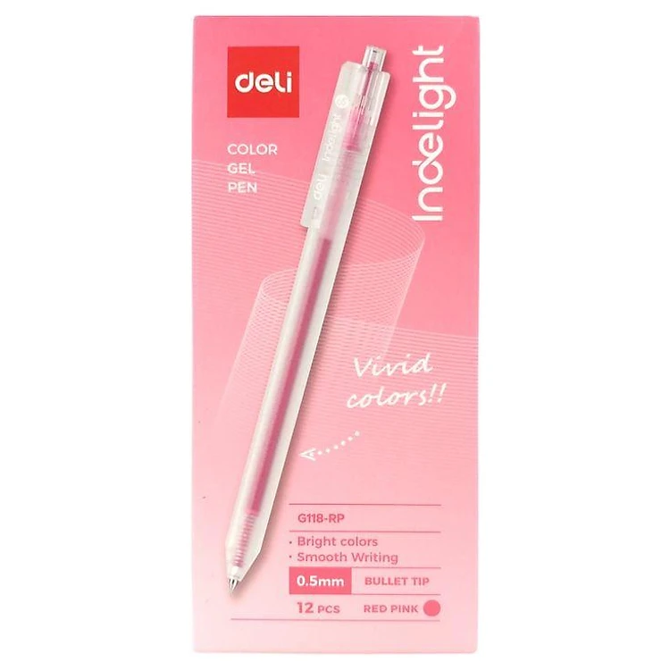 Bút Gel Bấm Deli 0.5mm EG118-RP Màu Hồng Tươi