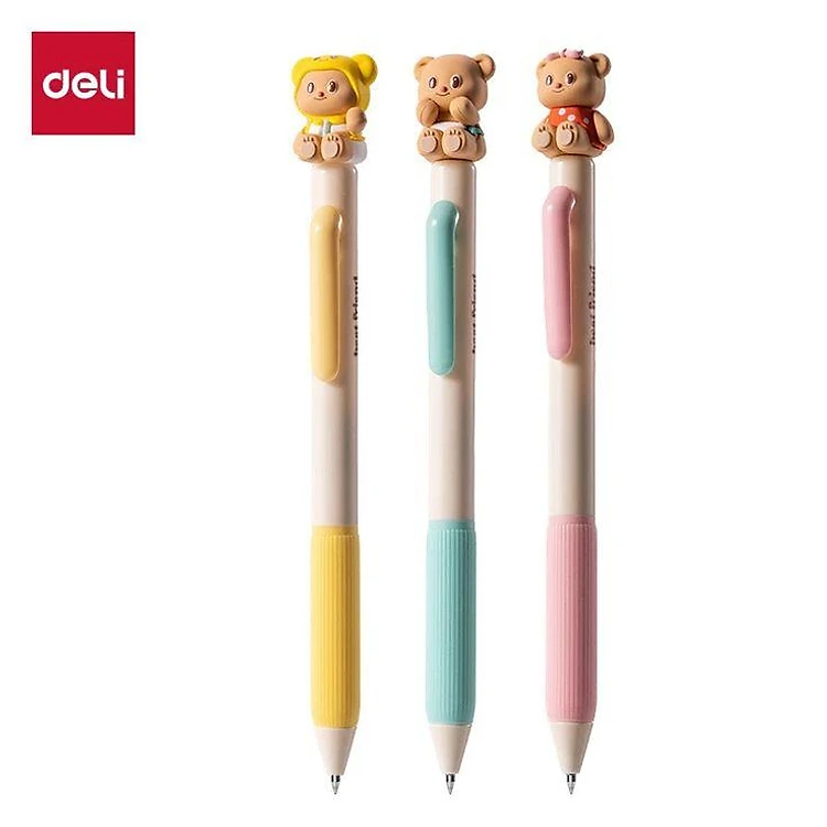 Bút Gel Bấm Deli Gấu Bơ 0.5mm Màu Đen HY004