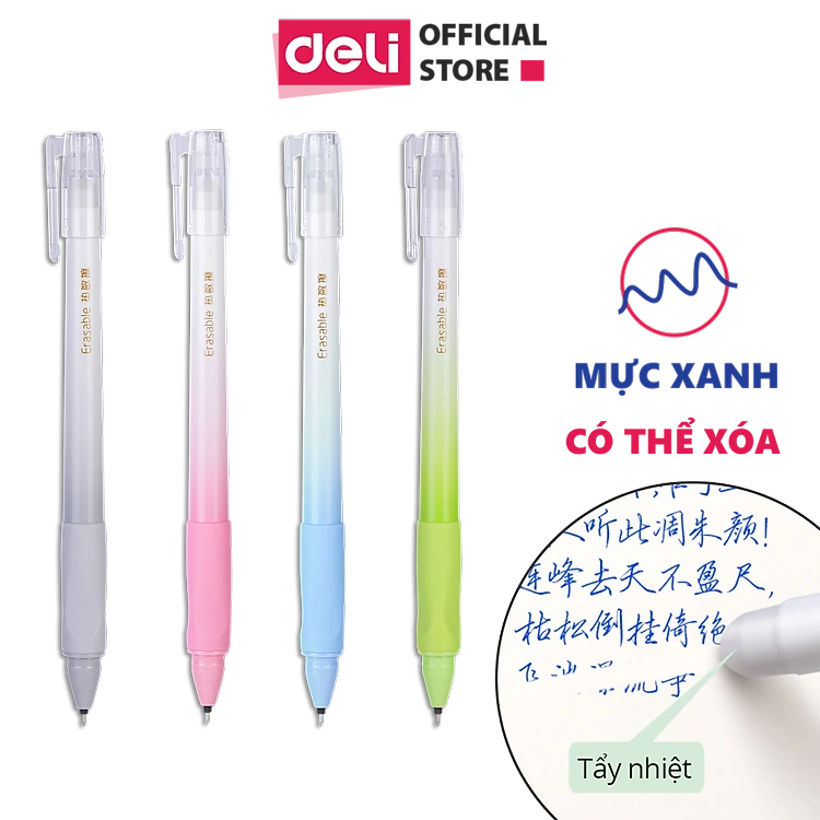 Bút gel xóa được có nắp đậy Deli - ngòi 0.5mm - mực Xanh/ Đen - A660