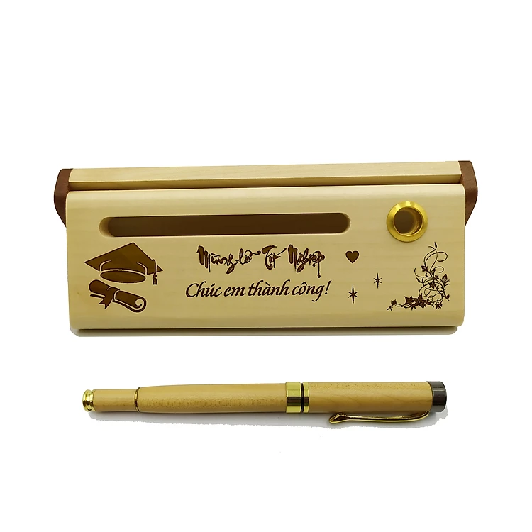 Hộp bút gỗ bi nắp đậy mực nước được khắc laser làm quà tặng rất ý nghĩa bởi các ưu điểm và tính năng sau: