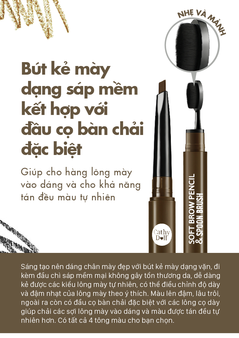 Bút kẻ chân mày Cathy Doll Soft Brow Pencil & Spoon Brush 0.28g