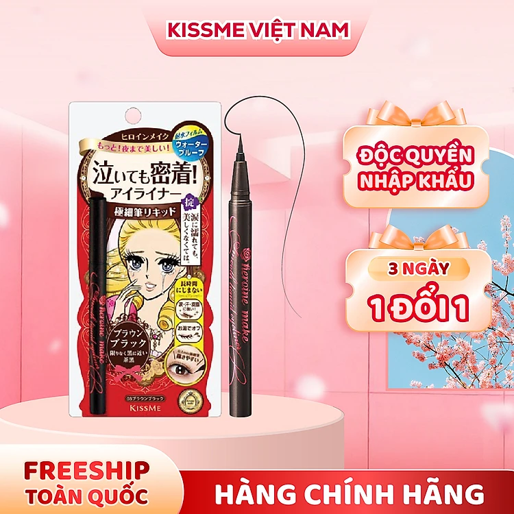 Bút Kẻ Mắt Nước Không Trôi Không Lem Nét Siêu Sắc Mãnh Kissme Heroine Make Eyeliner Smooth Keep 0.4 mL