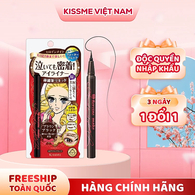 Bút Kẻ Mắt Nước Siêu Chống Trôi Màu Nâu Đen Kissme Heroine Make Eyeliner Smooth Keep 0.4 mL