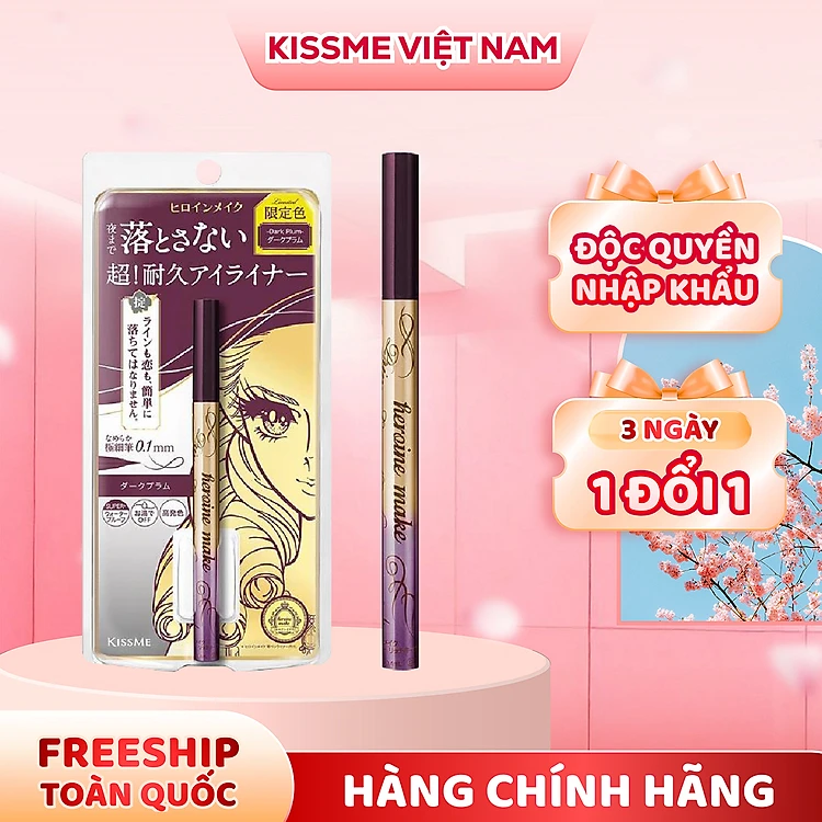 Bút Kẻ Mắt Nước Siêu Chống Trôi Nét Kẻ Sắc Mảnh Màu Nâu Tím Kissme Heroine Make Eyeliner Rich Keep 0.4 mL