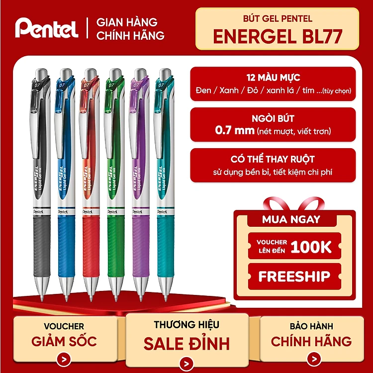 Bút Ký Mực Gel Pentel Energel BL77 Ngòi 0.7mm | 12 Màu Mực Sống Động