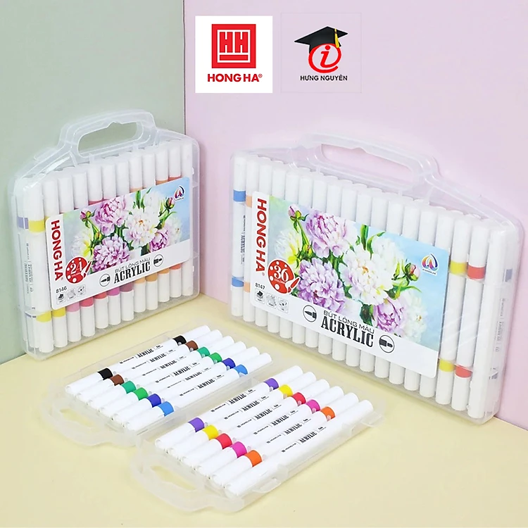 Bút lông màu Acrylic 2 đầu Hồng Hà tô trên mọi chất liệu (12/24/36 màu) - 8145 / 8146 / 8147