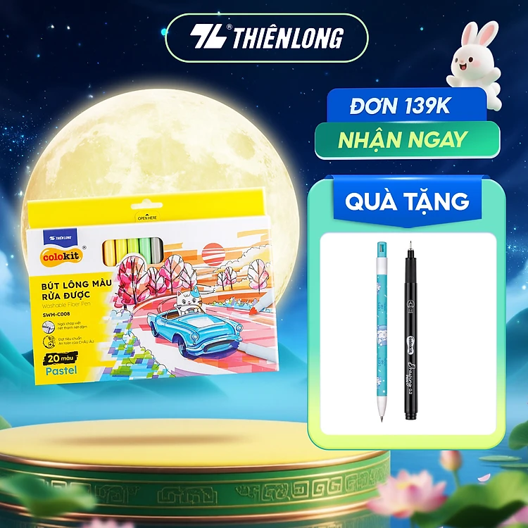 Bút lông màu Fiber Pen 20 màu Pastel Thiên Long Colokit rửa được an toàn sử dụng tô màu, vẽ tranh, calligraphy SWM-C008