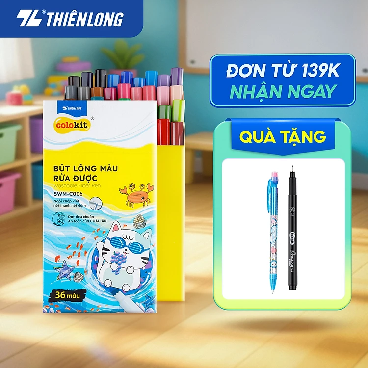 Bút lông màu Fiber Pen 36 màu Thiên Long Colokit rửa được tiêu chuẩn Châu Âu an toàn sử dụng tô màu, vẽ tranh SWM-C006