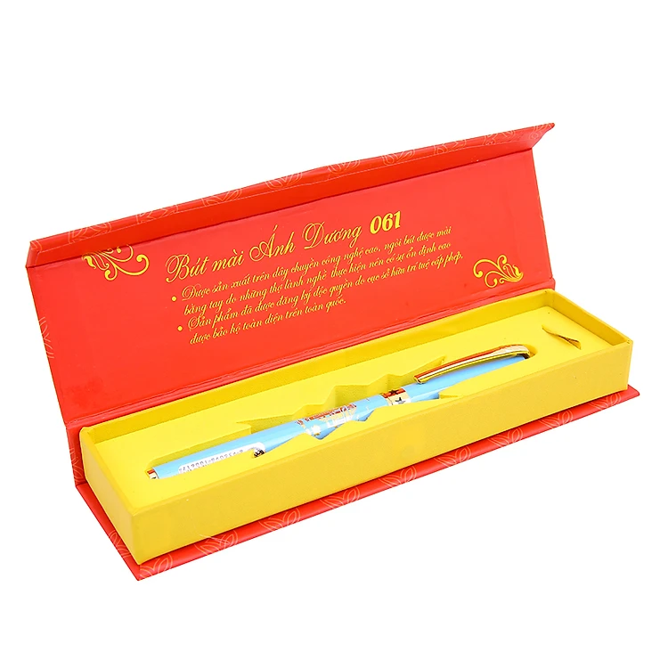 - Bút Mài Ánh Dương 061 (Ngòi Vàng 22) - Xanh Dương với ngòi bút được giữ nguyên bản dùng cho các bút có ngòi êm trơn, và đươc mài vát theo thói quen của người sử dụng với các mã bút luyện chữ đẹp nét thanh nét đậm.