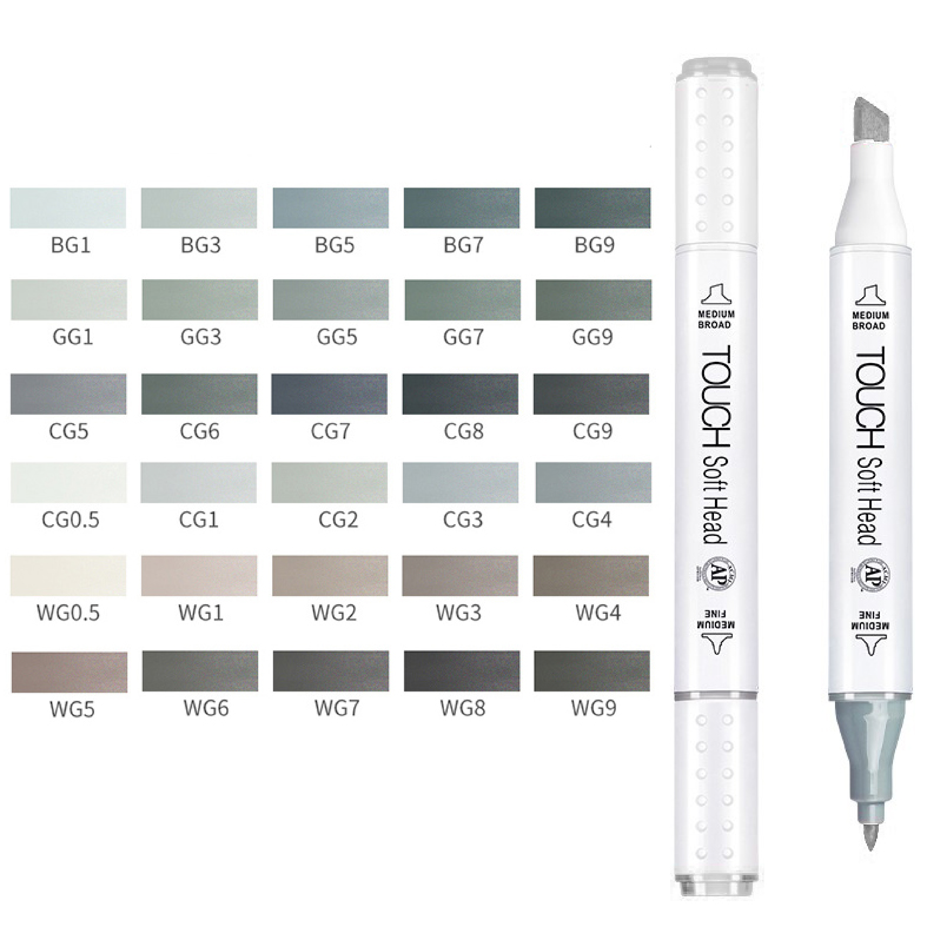 Bảng Màu Bút Marker TOUCH SOFT HEAD Lẻ ( Nhóm Màu Xám )