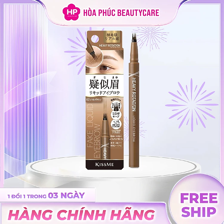Bút Nước Phẩy Sợi Lông Mày Kissme Heavy Rotation Fake Liquid Eyebrow (Màu Nâu Nhạt #02)