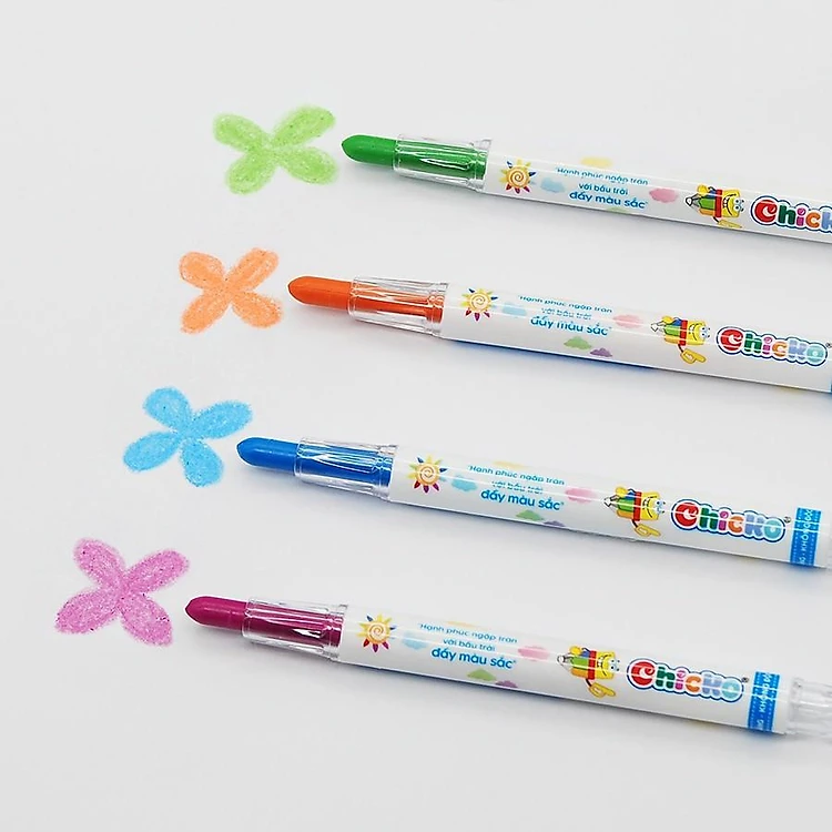 Bút sáp màu xoay được làm từ những thành phần không độc hại, giúp bé an toàn khi sử dụng, kết cấu bút xoay độc đáo, dễ thu gọn, trơn mịn, không dây bẩn, tiết kiệm khi sử dụng. Với 12 màu sắc, trẻ có thể thỏa sức tô vẽ và tạo ra những bức tranh nhiều màu sắc. Bộ bút sáp không chỉ giúp bé nhận biết về nhiều màu sắc khác nhau mà còn để trẻ tự do phát triển khả năng sáng tạo,pha trộn màu khi tô vẽ nâng cao năng khiếu mỹ thuật của mình.