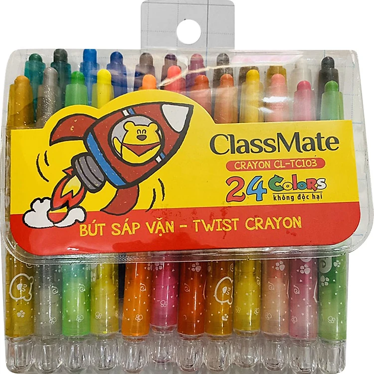 - Bút Sáp Vặn Classmate TC103 - 24 Màu - Mỗi cây màu có kích thước vừa với tay của bé, giúp bé cầm nắm và tô màu dễ dàng hơn.