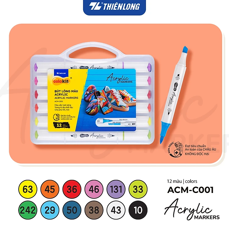 Bút sơn/ Bút lông 12/24/36 màu - Acrylic Markers 2 đầu ngòi ThiênLong Colokit - Màu sắc tươi sáng Trang trí đa chất liệu