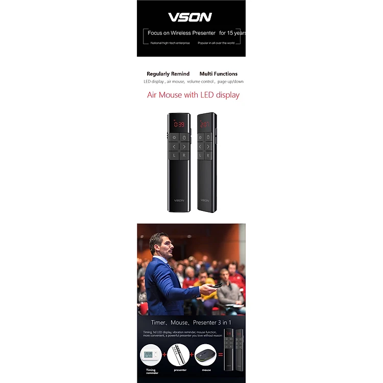Bút Trình Chiếu Không Dây kiêm Chuột Bay VSON N81 – Tích Hợp Laser & Nhiều Tính Năng Hỗ Trợ - Hàng chính hãng