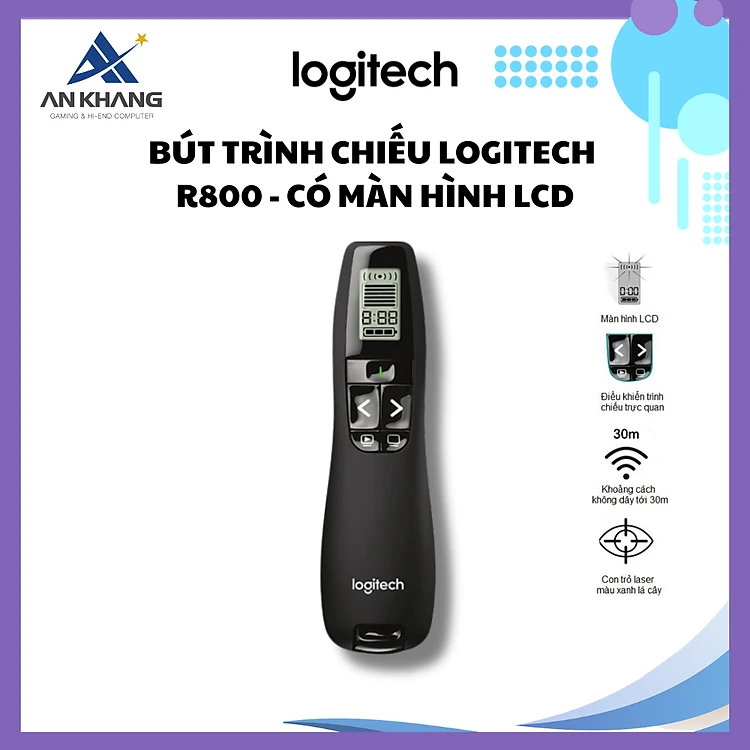 Bút trình chiếu LOGITECH R800 - Có màn hình LCD, phạm vi kết nối 30M - Hàng chính hãng - Bảo hành 36 tháng