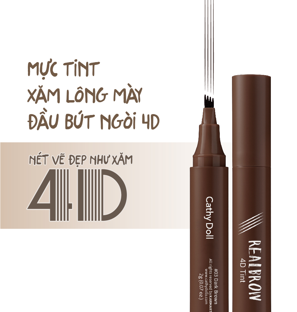 Bút vẽ chân mày Cathy Doll Real Brow 4D dạng mực tint, cực kỳ nhanh khô, giữ lâu cả ngày.