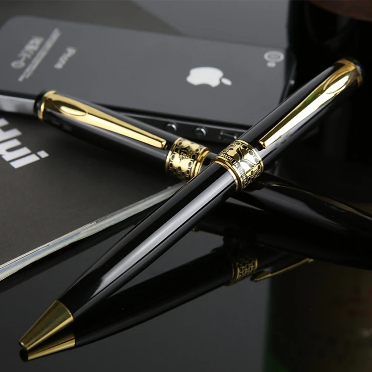 Bút Viết Bi Vỏ Kim Loại Sơn Đen Bóng Điểm Nhấn Mạ Vàng Baoer BP-68