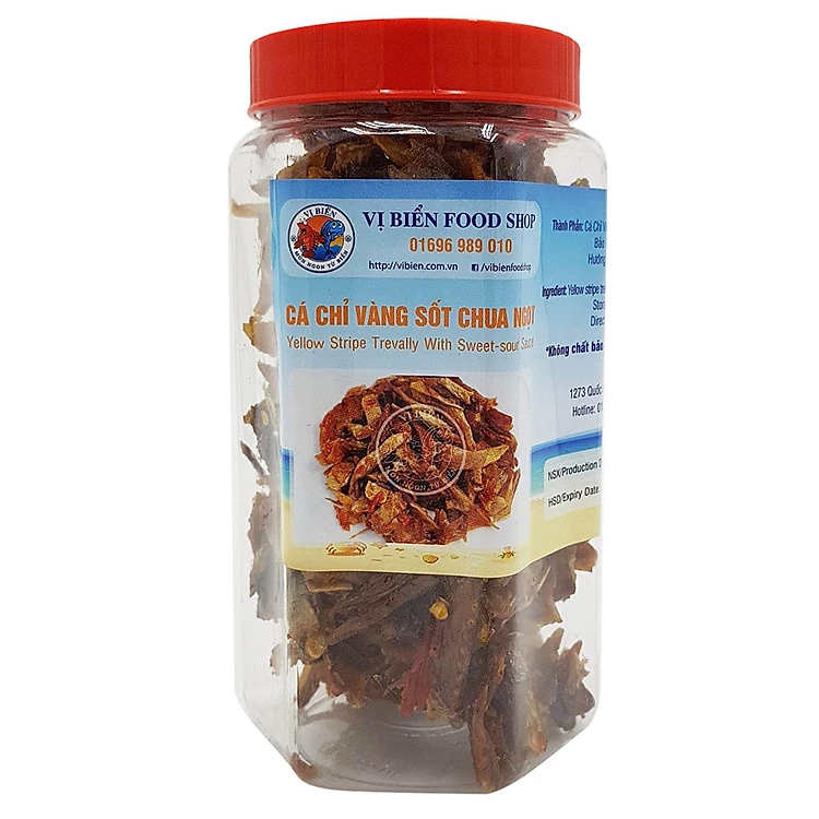 - Cá Chỉ Vàng Sốt Chua Ngọt được chọn từ những con cá tươi ngon nhất, phơi khô, cắt miếng vừa ăn, trộn với gia vị (muối, đường, chanh, ớt….), sên trên lửa liu riu cho đến khi nước sốt cô đặt lại, bám đều trên miếng cá. Hòa quyện cung hương vị tự nhiên của cá, nước sốt sẽ tạo thành 1 món khô thơm ngon dùng để nhâm nhi với bạn bè.
