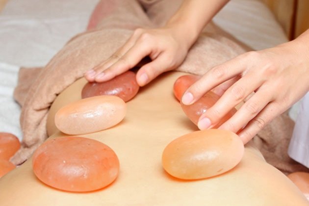 Massage đá muối trên toàn cơ thể giúp lưu thông khí huyết, đào thải độc tố