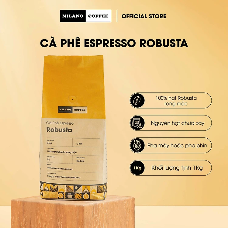 Cà phê 100% ROBUSTA rang mộc nguyên chất MILANO COFFEE - 1kg