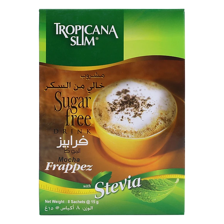 - Cà Phê Ăn Kiêng Mocha Với Chiết Xuất Cỏ Ngọt Tropicana Slim (8 Gói x 15g) là sự pha trộn hoàn hảo của cà phê hảo hạng với sữa cao cấp và hương vị mocha thơm ngon.