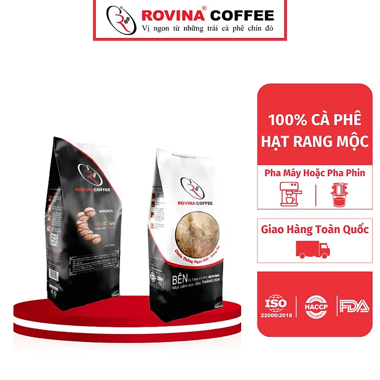 Cà Phê Arabica Cầu Đất - Pha Máy- Gói 500gr Nguyên Hạt Mùi Hương Dịu Nhẹ Vị Cân Bằng Hoàn Hảo Rovina Coffe