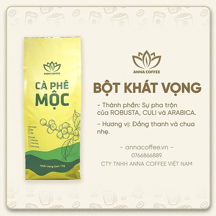 CÀ PHÊ BỘT PHA PHIN KHÁT VỌNG 1KG ANNA COFFEE
