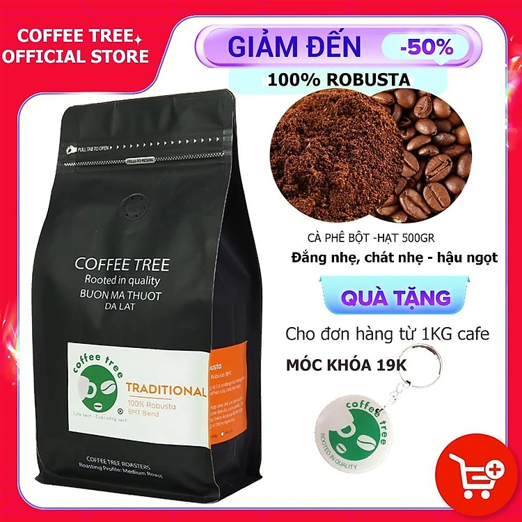 Cà Phê Bột Robusta Buôn Mê Thuột Nguyên Chất 100% Coffee Tree - Hương Thơm Nhẹ - Vị Đắng Vừa - Hậu Vị Ngọt