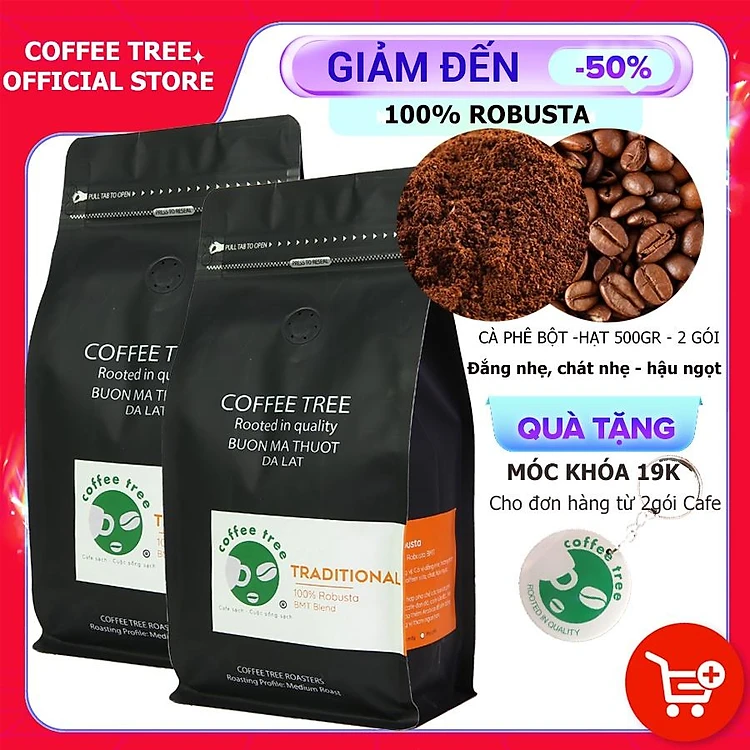Cà Phê Bột Robusta Buôn Mê Thuột Nguyên Chất 100% - CoffeeTree - 1Kg - Hương Thơm Nhẹ - Vị Đắng Vừa - Hậu Vị Ngọt