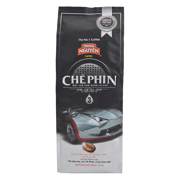 - Cà Phê Chế Phin 3 Trung Nguyên (500g) được làm từ hạt cà phê nguyên chất, có vị đắng hơi gắt, mùi thơm nhẹ. Chỉ bằng vài thao tác đơn giản, bạn có thể dễ dàng pha chế theo khẩu vị ưa thích.