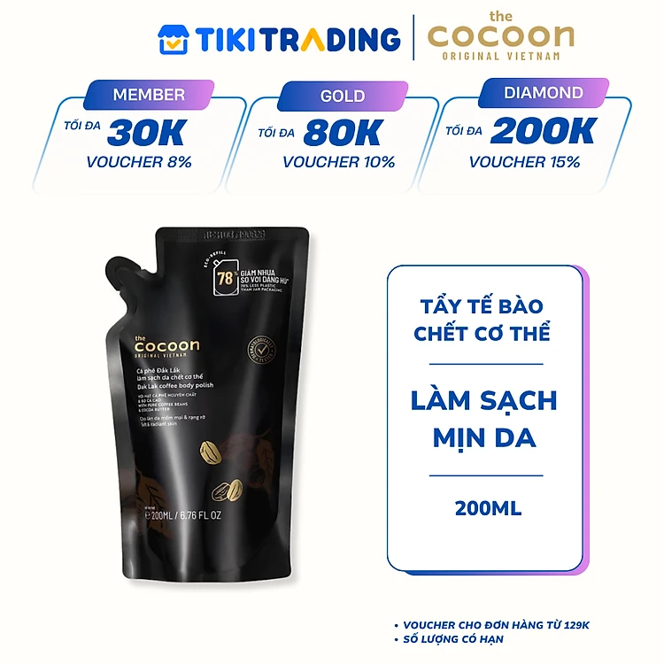 Cà phê Đắk Lắk làm sạch da chết Cocoon túi 200ml