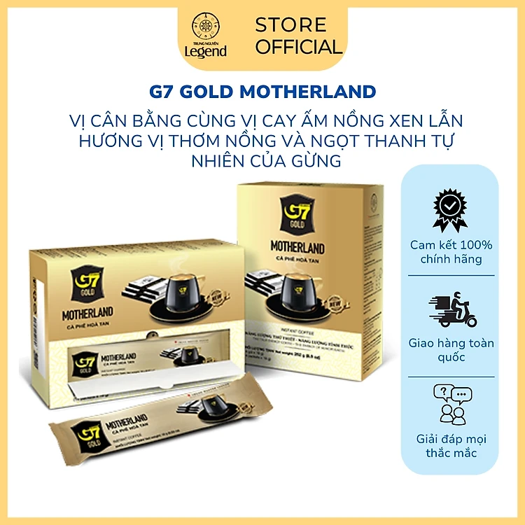 Cà Phê Hòa Tan G7 Gold Motherland Trung Nguyên - Hộp 14 Gói 18gr - Cà Phê Sữa Thơm Nồng, Ngọt Thanh Vị Gừng