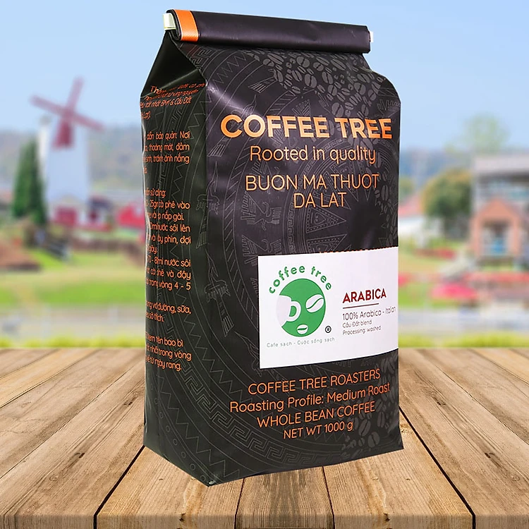 Cà phê hạt Arabica Cầu Đất nguyên chất 100% Coffee Tree 1kg thơm nồng, vị nhẹ, gu tây - Cà phê Đà Lạt tuyển chọn hoàn toàn trái chín rang công nghệ Châu Âu