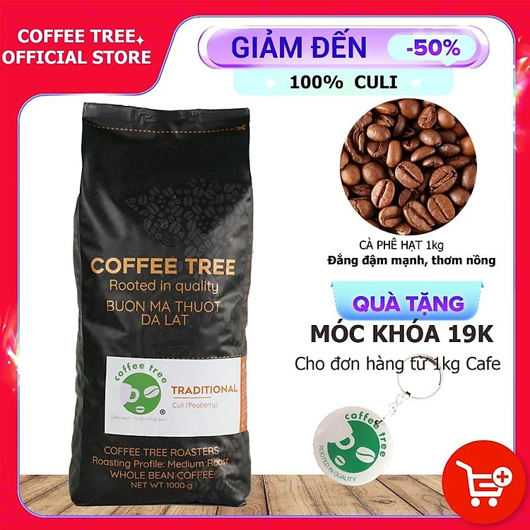 Cà Phê Hạt CuLi Buôn Mê Thuột Nguyên Chất 100% - CoffeeTree - 1Kg - Hương Thơm Nhẹ, Vị Đắng Đậm, Hậu Vị Ngọt
