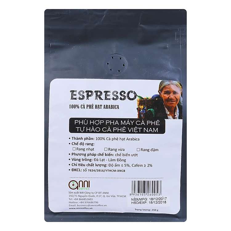 - Cà Phê Hạt Arabica Cầu Đất Anni Coffee (250g) được làm từ 100% Arabica, sản xuất trên dây chuyền công nghệ hiện đại.