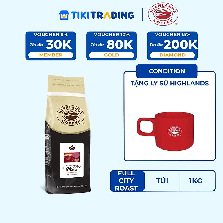 Cà phê hạt Full City Roast Highlands Coffee 1kg