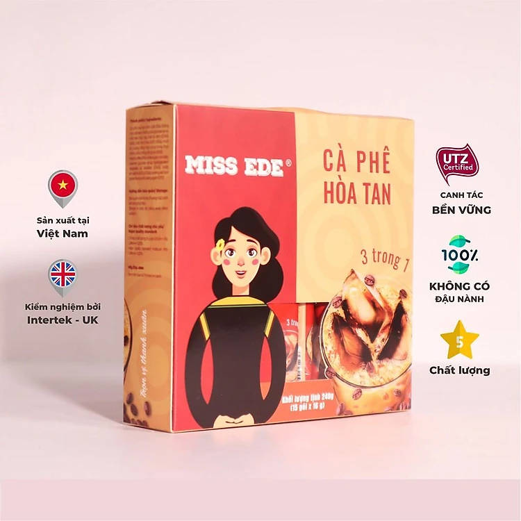 Cà phê hoà tan 3in1 MISS EDE - 240g (15 gói x 16 g) - Vị ngọt thanh, cà phê mạnh mẽ, sữa không béo, phù hợp cho cả nam v