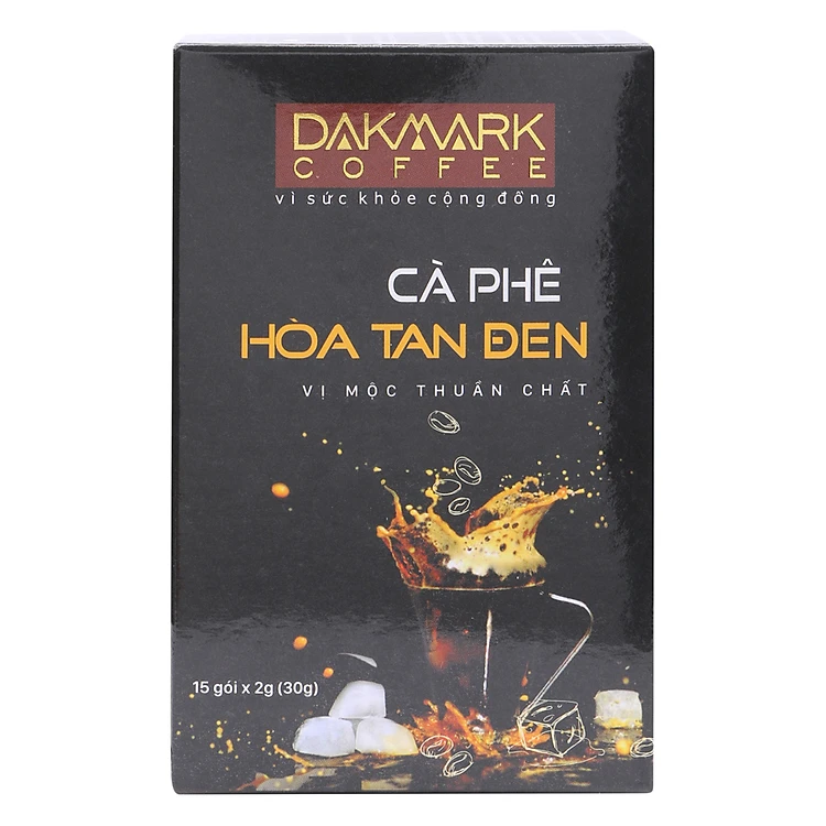 - Cà Phê Hoà Tan Đen DakMark (Hộp 15 Gói) là loại cà phê nguyên chất được chế biến từ nguyên liệu 100% là hạt cafe thơm ngon không pha trộn các loại tạp chất khác bằng công nghệ chế biến sạch, hạt cà phê nguyên chất không có yếu tố gây hại cho sức khỏe và không sử dụng các loại hóa chất để tạo ra: Độ đậm đặc, độ sánh dẻo, độ béo, màu đen, nhiều bọt và mùi thơm cafe nhân tạo.