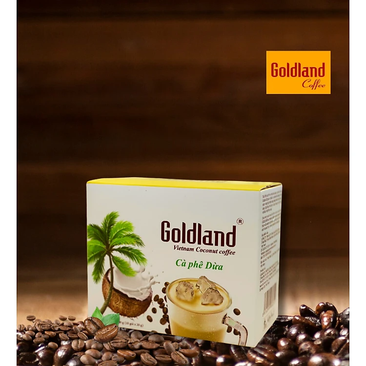 Cà phê Hòa tan Dừa Goldland Hộp 200g (10 gói x 20g)/ Cà phê Song Nguyên