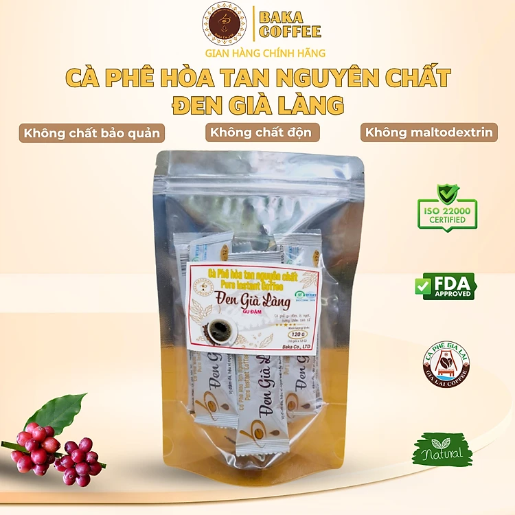 Cà Phê Hòa Tan Nguyên Chất ĐEN GIÀ LÀNG - Bì Zip