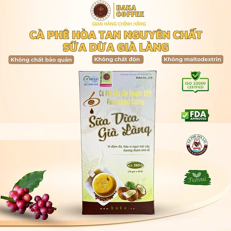 Cà Phê Hòa Tan Nguyên Chất SỮA DỪA GIÀ LÀNG - Hộp